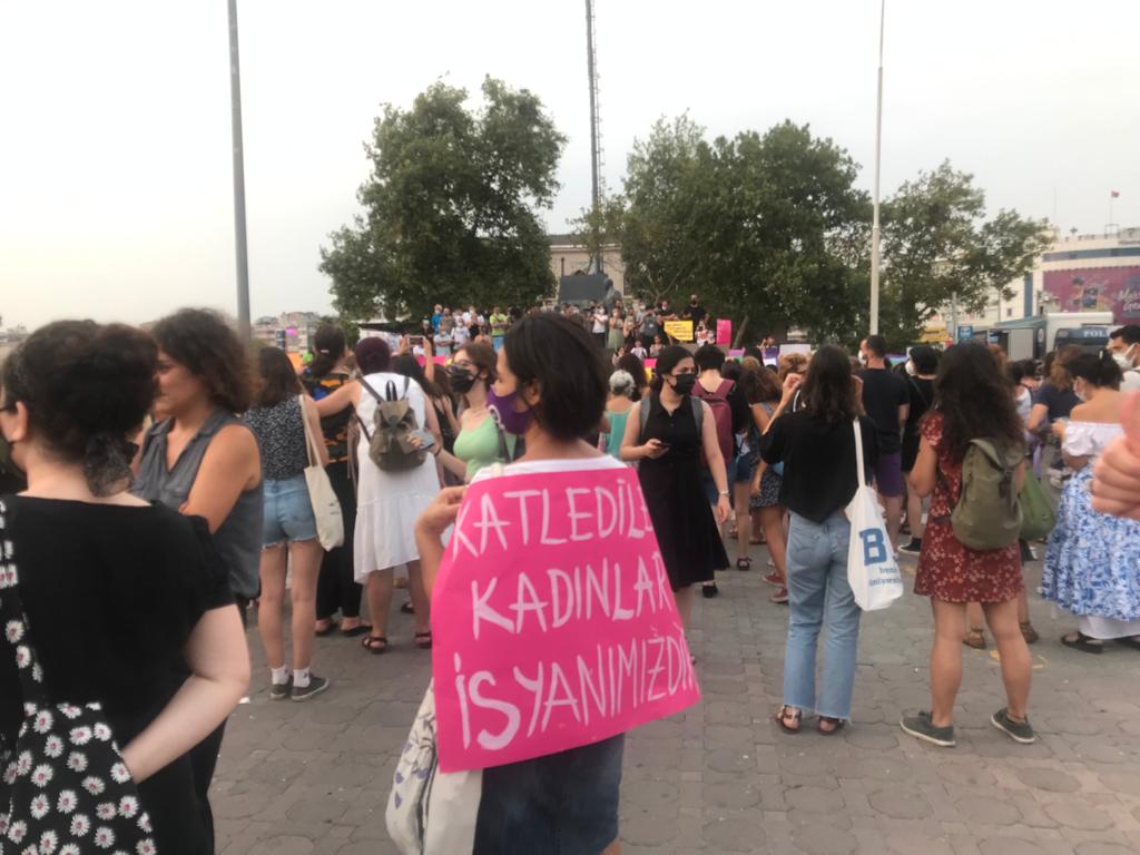 Eylemde kadınlar İstanbul sözleşmesine de vurgu yapılarak: 'İstanbul Sözleşmesi Yaşatır', ' İstanbul Sözleşmesinden Vazgeçmiyoruz ' slogamları da atıldı.