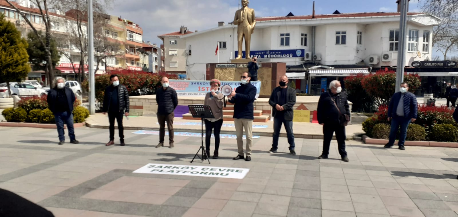 Şarköy ilçesi Cumhuriyet meydanında saat 13.00’de bir araya gelen Şarköy çevre platformu bileşenleri adına, Sevinç Erdoğdu bir basın açıklaması yaptı.