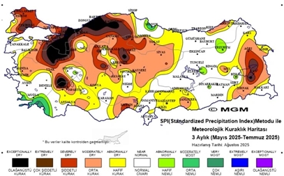 Meteoroloji Genel Müdürlüğü’nün (MGM) hazırladığı ‘Standartlaştırılmış Yağış İndeksi (SPI)’ verilerine göre ülke geneli şiddetli veya olağanüstü kuraklık etkisinde.